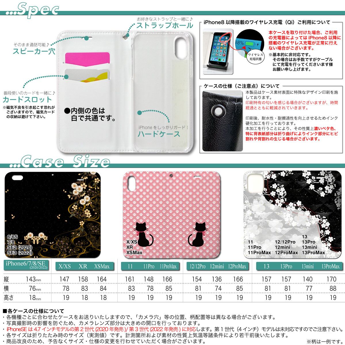 ※掲載イメージ一枚目の画像はiPhoneいずれかの機種用となります。お送りするケースはサイズ・カメラ穴等お選びいただいた機種専用のものとなります。機種に合わせデザイン配置等は若干変更が生じます。