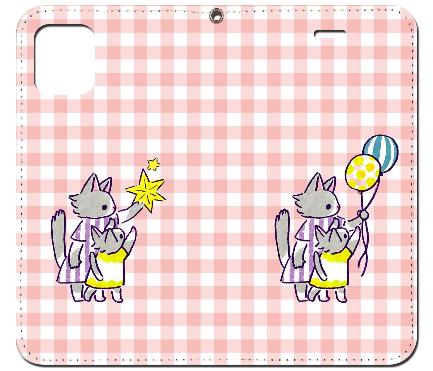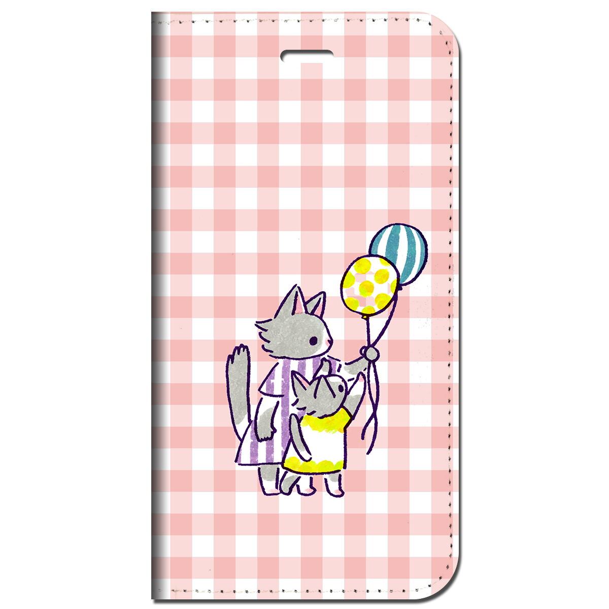 iPhone13 他 手帳型ケース ネコの親子 チェック桃色 柄 iPhoneSE iPhone8 iPhone12 iPhoneXR 他 iPhone 各機種対応 | スマホケースのお店 ネットショップマックハリアー 本店