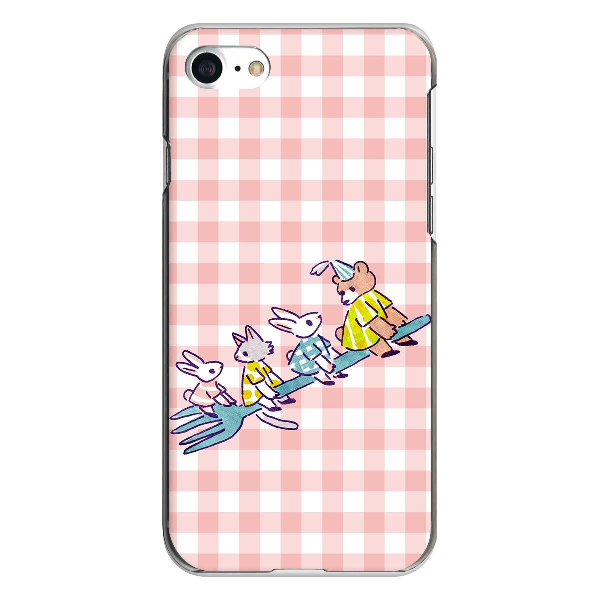 iPhone Android 全機種対応 スマホケース うさぎ くま ネコ チェック桃色 iPhone13 iPhoneSE AQUOS Xperia Galaxy Redmi ハード クリア | スマホケースのお店 ネットショップマックハリアー 本店